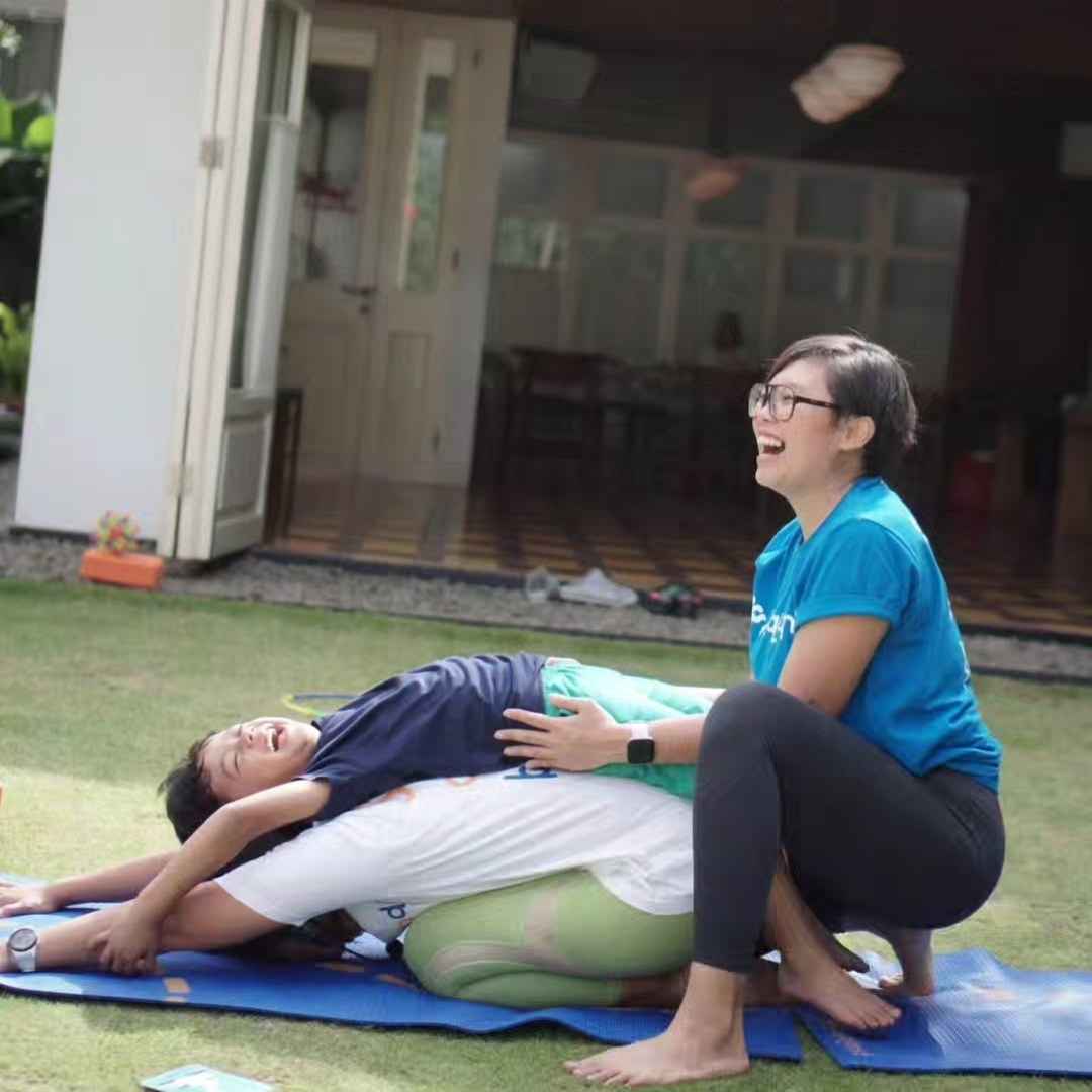 Eits, meski sama-sama mengajar yoga, ternyata sertifikasi untuk seorang instruktur yoga anak berbeda lho! Enggak serta merta kalau memiliki sertifikasi yoga dewasa bisa mengajar yoga anak ya!Inilah yang disampaikan oleh Mba Mira, bahwa ketika bergabung dengan Yogaland instruktur harus memiliki sertifikasi yoga anak. Syarat kedua, instruktur harus menyukai anak-anak.